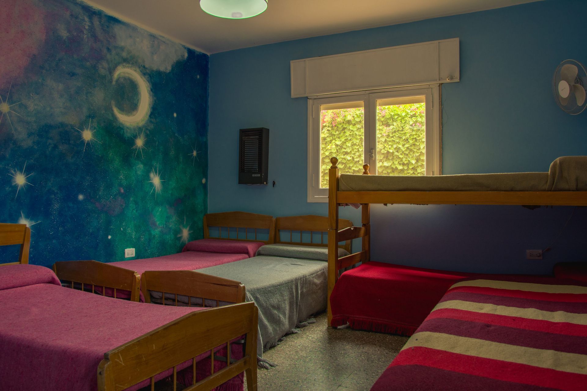 Esta habitacion cuenta con una cama matrimonial y cuatro camas simples. Es para 5 o 6 personas. Es la habitacion mas grande. Tiene baño privado, ropa de cama y toallones.